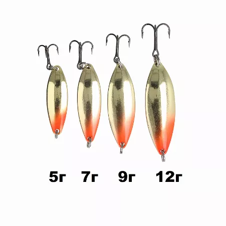 The spoons are equipped with treble hooks VMC, each size individually selected.