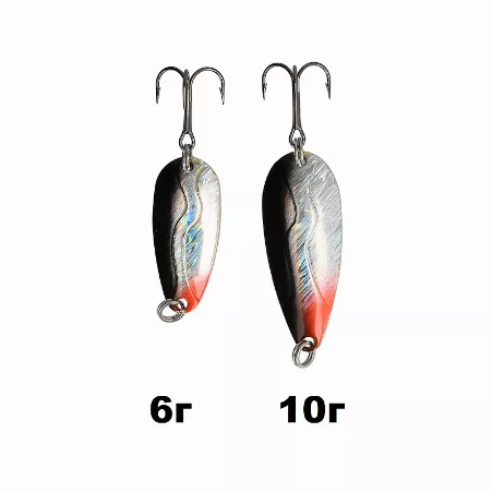 The spoons are equipped with treble hooks VMC, each size individually selected.