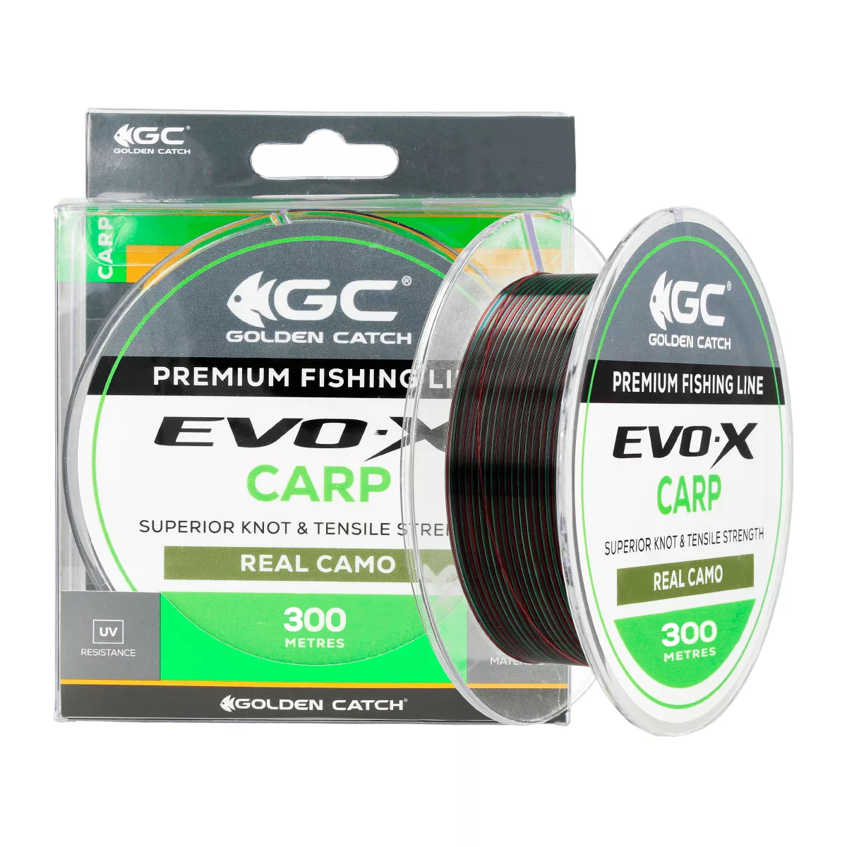 Specifications Golden Catch Nylon Line EVO-X Carp 300m Real Camo