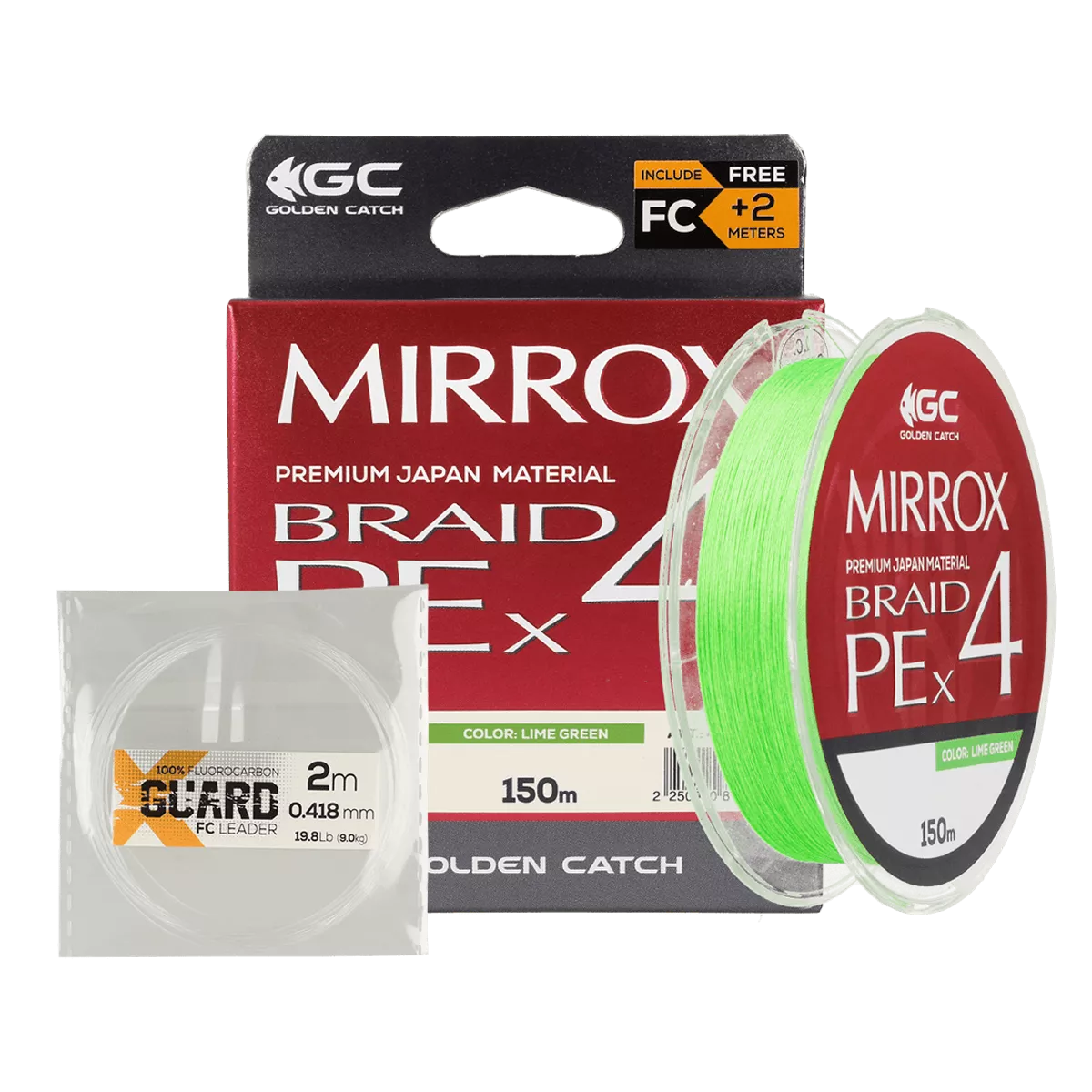 Specifications Golden Catch Braided Line Mirrox PE X4 150m Lime Green