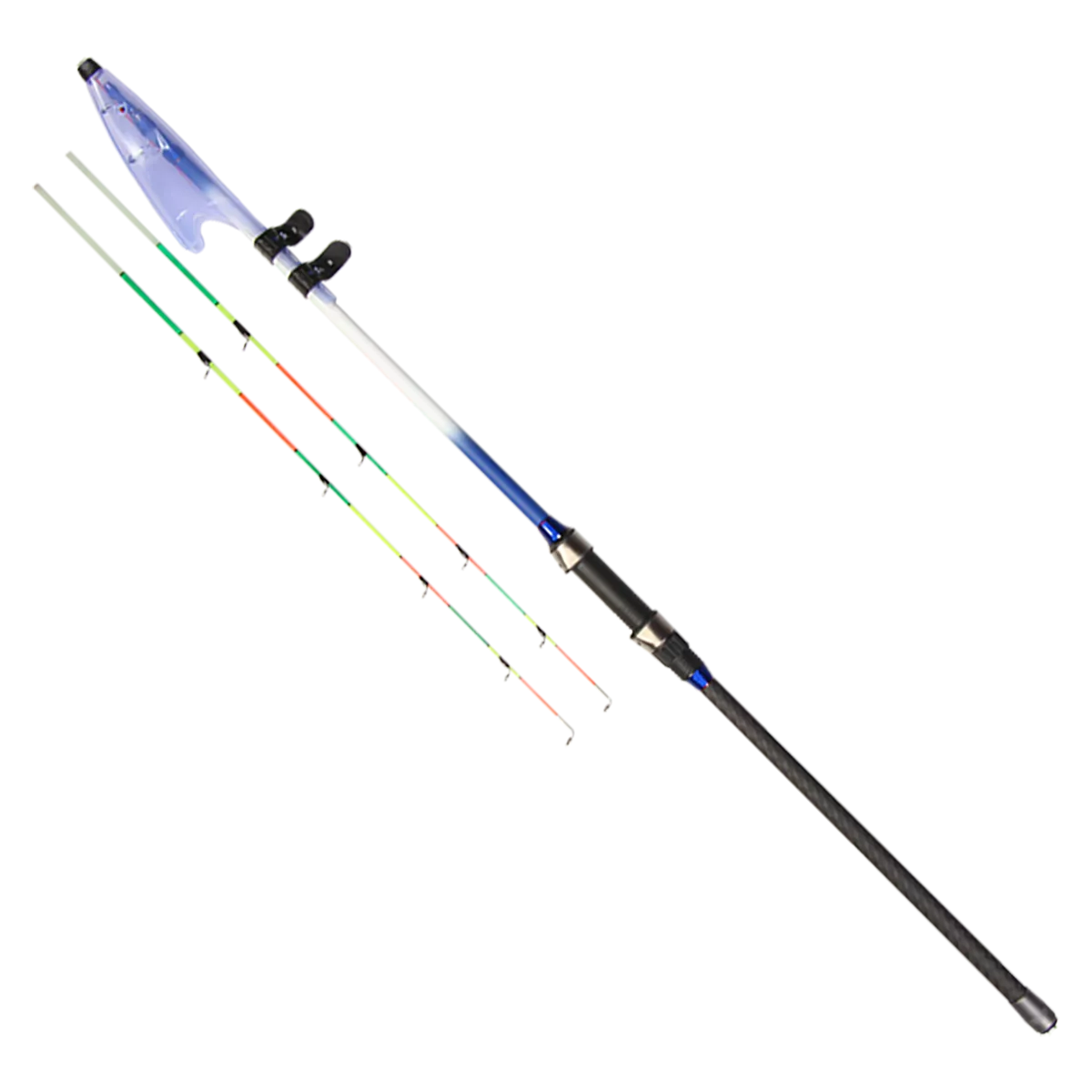 Two interchangeable tips made of monolithic fiberglass have great flexibility, which together with bright coloring provides excellent visual control, and different rigidity tips will adjust to specific fishing conditions.