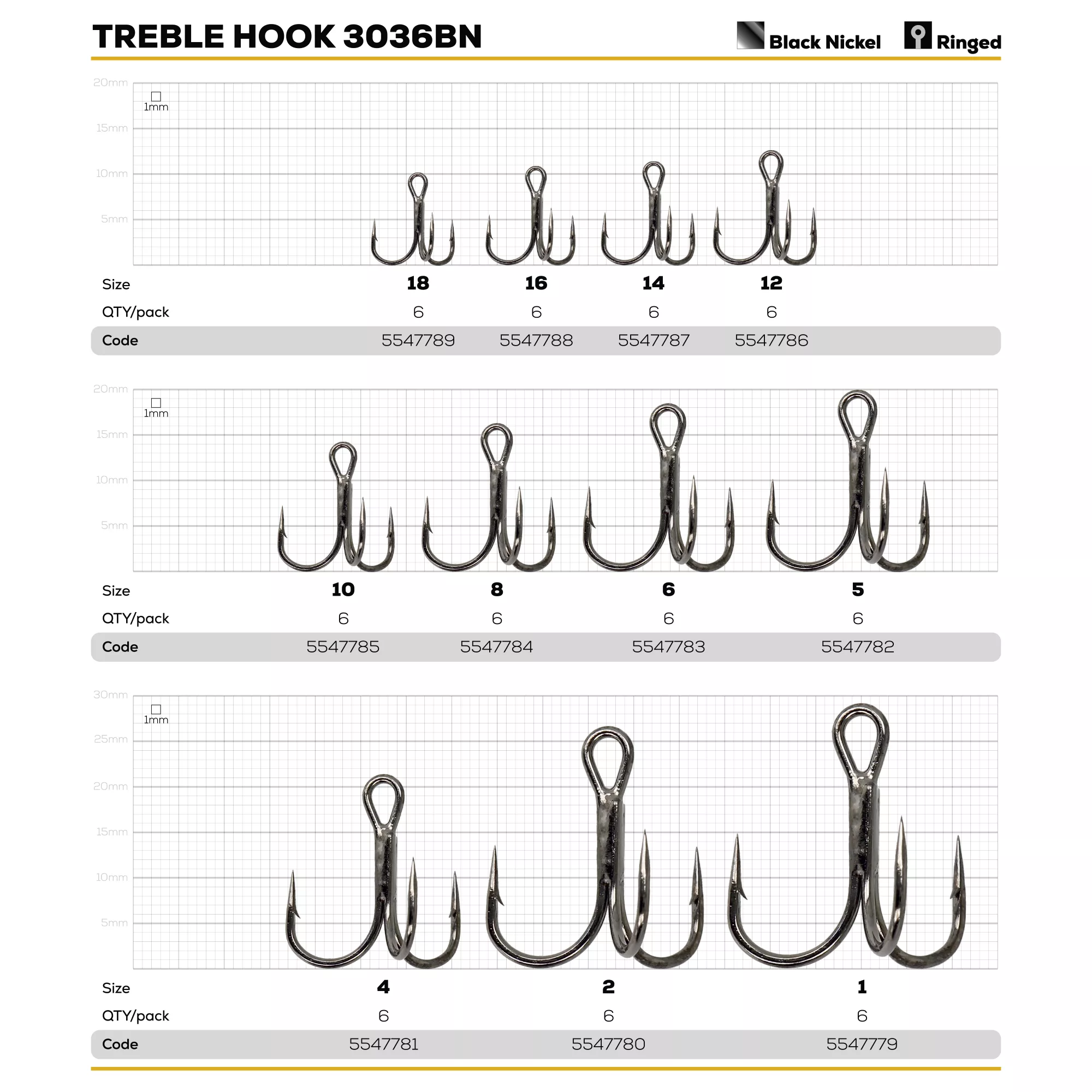 Specifications Golden Catch Treble Hook 3036BN old packaging