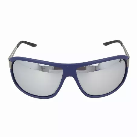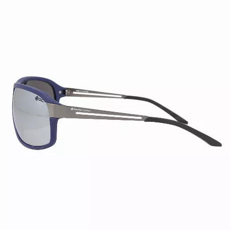 The GC MBL1111WHM glasses feature a blue-grey frame made from durable plastic, equipped with gray lenses with a mirrored coating.