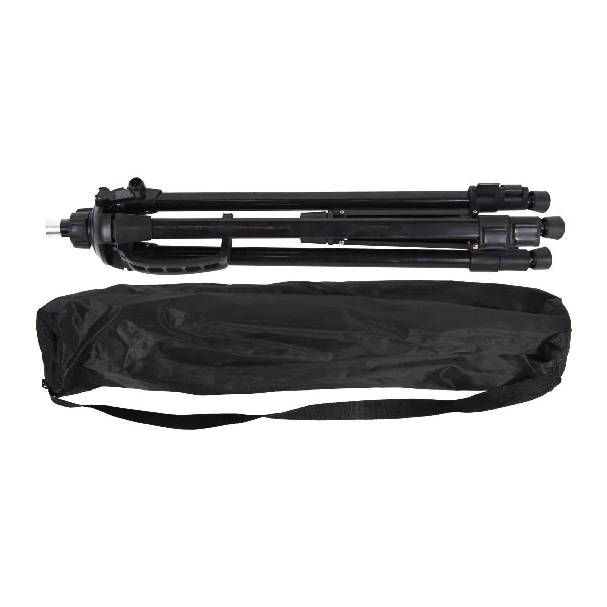 The construction consists of 3-section telescopic legs and an extendable central bar.